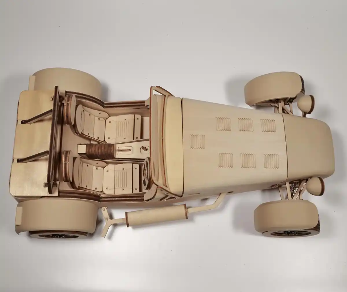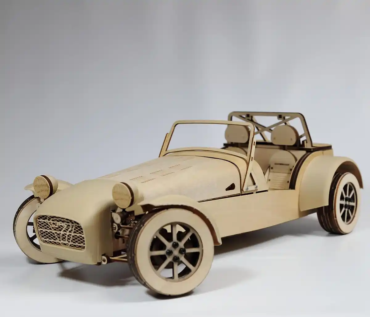 本製品 木製模型“ケータハム セブン340”組み立てキットは、木の質感を生かしながら、実車”ケータハムセブン”をスケールサイズ1:10で細部まで再現していますので、組立てをお楽しみいただいた後もインテリアとしても、素敵なアクセントとしてお楽しみいただけます。